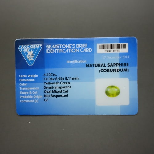 Produk Jenis ini bernama Yellowish Green Sapphire.