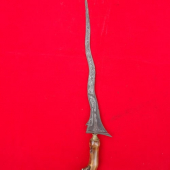 Rp 1.850.000Pusaka Keris Buntel Mayit. Dapur / Bentuk : Balebang. Pamor / Lambang / Filosofi : Buntel Mayit. Tangguh / Era Pembuatan / Estimasi : Kamardikan Model Bilah Pusaka : Keris Luk 7. Panjang Bilang-Gonjo Keris : 37,7 CM Panjang Seluruh Keris : 45 CM Asal Usul Pusaka : Dari Mpu Wesi Aji. Warangka Ladrang Surakarta,… selengkapnya